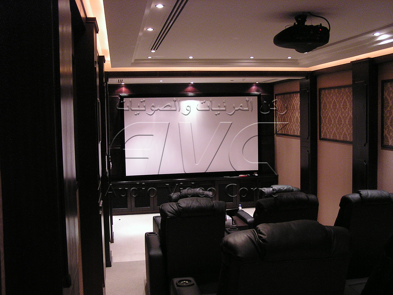 The video comes from the SIM2 Nero Projector that project to 138” screen from Screen Research and Paradigm Classic Collection three LCR in-wall speakers placed behind the screen are driven by Anthem AV Receiver which also drive the 2 side and 2 rear in-wall surround speakers.